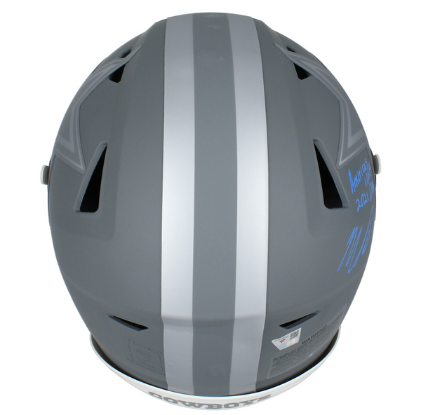 This authentic 'Slate' Speedflex helmet has been personally hand-signed by Micah Parsons with the added inscriptions: "21DROY" & "Americas Team." It is officially licensed by the National Football League and comes with an individually numbered, tamper-evident hologram from Fanatics Authentic. To ensure authenticity, the hologram can be reviewed online. This process helps to ensure that the product purchased is authentic and eliminates any possibility of duplication or fraud.This helmet is limited to 25 and you are bidding on number "2" from the edition.