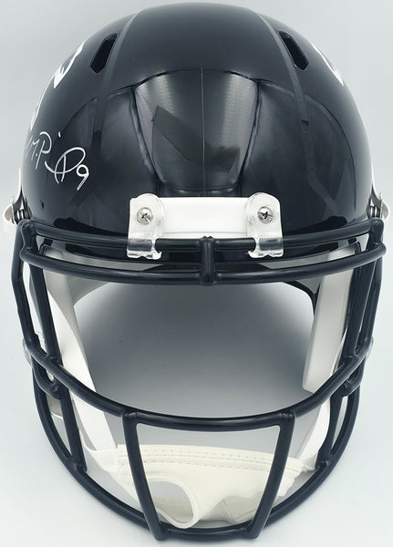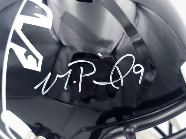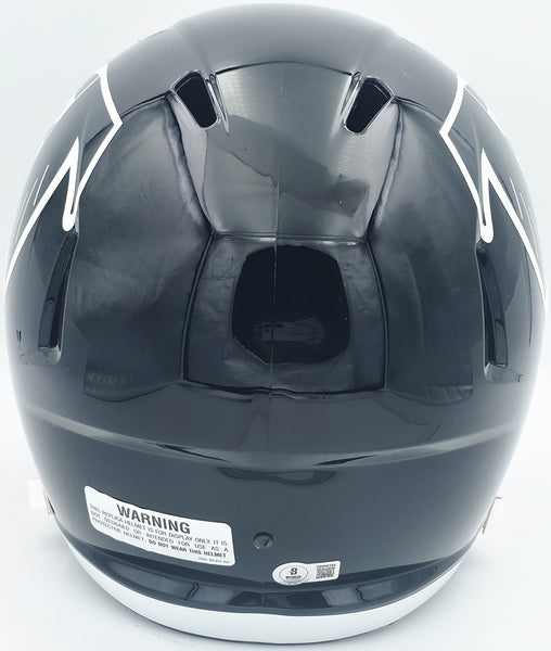 This is an Atlanta Falcons 1990-02 Throwback Black Full Size Speed Replica Helmet that has been hand signed by Michael Penix Jr. This item has been witnessed and certified authentic by Beckett Authentication (BAS) and comes with their tamper-proof witness hologram.