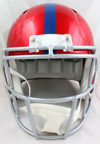 Michael Strahan Autographed NY Giants F/S Flash Speed Helmet-Beckett W Hologram *White This is a hand Autograph of Michael Strahan of the New York Giants on a Riddell Football Full Size Flash Speed Replica Helmet. This item has a Beckett Witnessed Authentication, which comes with a numbered hologram and a generic Beckett Certificate of Authenticity. You can view this item on the Beckett Authentication website and it shows when and where the item was signed. It was signed either at a public autograph appearance or a private signing. This is a stock photo of the item. Although you may not receive this exact item, the item you receive is virtually identical and brand new in great shape.