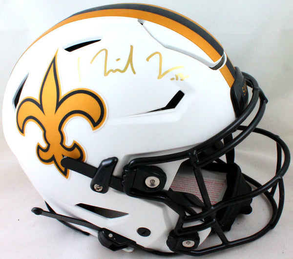 Michael Thomas Autographed Saints Speed Flex Lunar F/S Helmet- Beckett W Hologram *Gold This is a Michael Thomas of the New Orleans Saints hand autographed Riddell Football Speed Flex Lunar Full Size Authentic Helmet. This item has a Beckett Witnessed Authentication, which comes with a numbered sticker hologram and a generic Certificate of Authenticity. You can view this item on the Beckett website and it shows when and where the item was signed. It was signed either at a public autograph appearance or a private signing. This is a stock photo of the item. Although you may not receive this exact item, the item you receive is virtually identical, brand new, and in great shape.