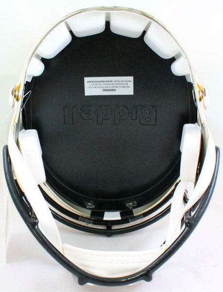 This is a Michael Thomas of the New Orleans Saints hand autographed Riddell Chrome Full Size Replica Helmet. This item has a Beckett Witnessed Authentication, which comes with a numbered and a matching Certificate of Authenticity. You can view this item on the Beckett website and it shows when and where the item was signed. It was signed either at a public autograph appearance or a private signing. This is a stock photo of the item. Although you may not receive this exact item, the item you receive is virtually identical, brand new, and in great shape. This is a Michael Thomas of the New Orleans Saints hand autographed Riddell Chrome Full Size Replica Helmet. This item has a Beckett Witnessed Authentication, which comes with a numbered and a matching Certificate of Authenticity. You can view this item on the Beckett website and it shows when and where the item was signed. It was signed either at a public autograph appearance or a private signing. This is a stock photo of the item. Although you may not receive this exact item, the item you receive is virtually identical, brand new, and in great shape.