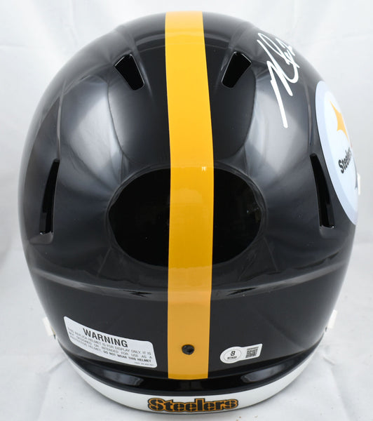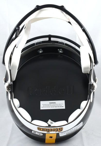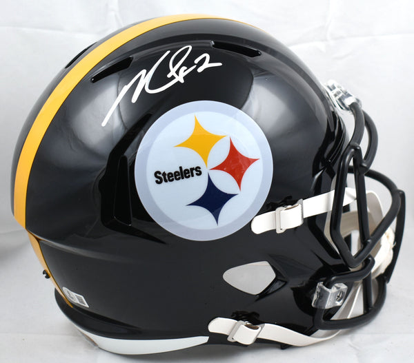 This is a Michael Vick of the Pittsburgh Steelers Autographed Riddell football full size Speed Replica helmet. This item has a Beckett Witnessed Authentication, which comes with a numbered hologram and a QR code for verification. You can view this item on the Beckett Authentication website and it shows when and where the item was signed. It was signed either at a public autograph appearance or a private signing. This is a stock photo of the item. Although you may not receive this exact item, the item you receive is virtually identical, brand new, and in great shape. *Autograph location may vary* This is a Michael Vick of the Pittsburgh Steelers Autographed Riddell football full size Speed Replica helmet. This item has a Beckett Witnessed Authentication, which comes with a numbered hologram and a QR code for verification. You can view this item on the Beckett Authentication website and it shows when and where the item was signed. It was signed either at a public autograph appearance or a private signing. This is a stock photo of the item. Although you may not receive this exact item, the item you receive is virtually identical, brand new, and in great shape. *Autograph location may vary*