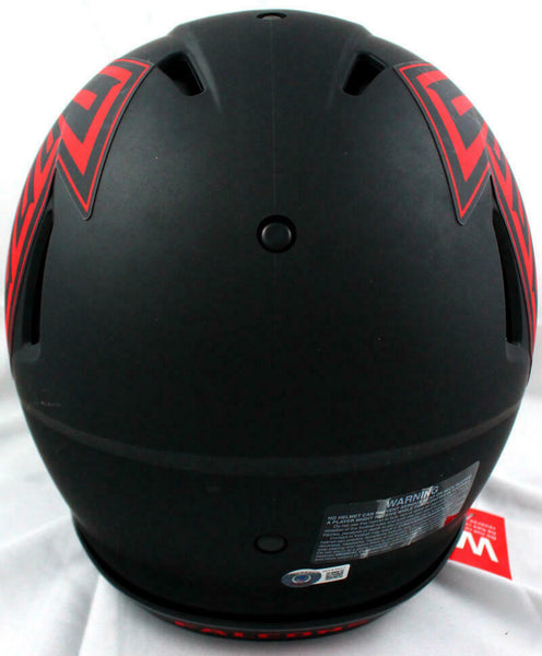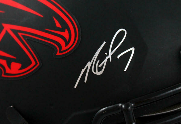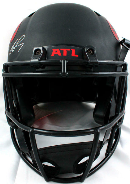 Michael Vick Autographed Atlanta Falcons F/S Eclipse Speed Authentic Helmet-Beckett W Hologram *Silver This is the hand autograph of Michael Vick of the Atlanta Falcons on a Riddell Football Full Size Eclipse Speed Authentic Helmet. This item has a Beckett Witnessed Authentication, which comes with a Beckett numbered sticker hologram and a QR code for verification. You can view this item on the Beckett website. It was signed either at a public autograph appearance or a private signing. This is a stock photo of the item. Although you may not receive this exact item, the item you receive is virtually identical and brand new in great shape.