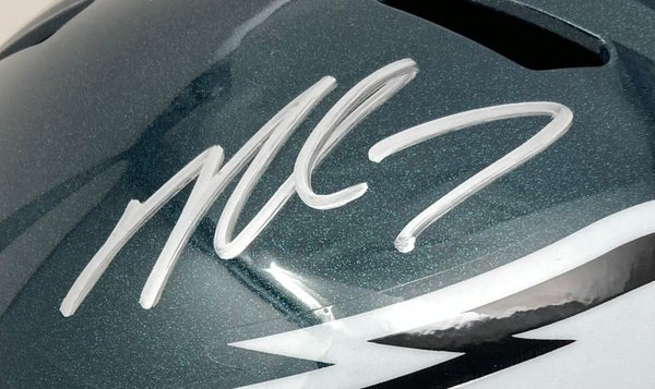 Featured is a Michael Vick signed Philadelphia Eagles full size replica speed helmet. This helmet has been hand signed by Vick and comes with the Beckett hologram and certificate of authenticity. This helmet would make a great addition to any sports memorabilia collection!. SPECIFICATIONS Autographed By: Michael Vick Team: Philadelphia Eagles Sport: Football Authentication: Beckett Grading Services