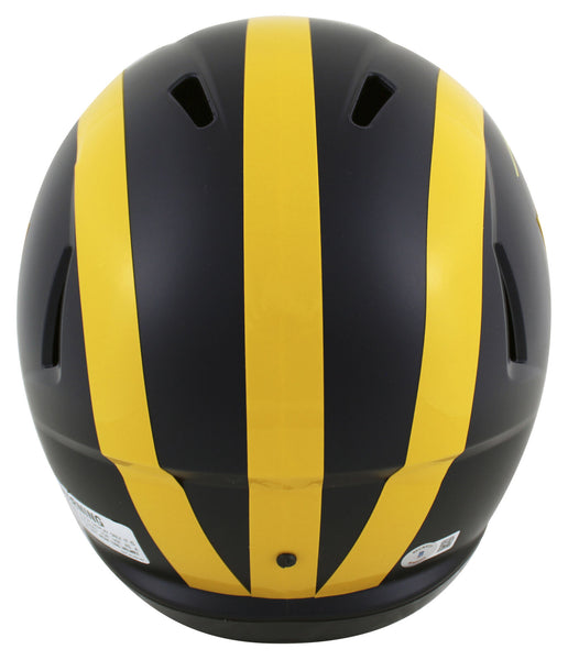 This Autographed Full Size Speed Rep Helmet has been Personally Signed by Ty Law of the Michigan Wolverines. This item is 100% Authentic to include a hologram by Beckett Authentication Services. This item will come with an affixed Beckett Authentication Services (BAS) authentication sticker, which includes a scannable QR code to verify authenticity. Please note that Beckett no longer provides serial-numbered COA cards, and the attached BAS sticker will serve as the complete authentication for this item. This is a BAS Witnessed Protection Program item which means a Beckett Authentication Service representative was present when this item was being signed. We conducted an autograph signing with Ty Law where multiples of the same item were signed. While the photographs are representative of this item, the size, placement and strength of the signature may vary. Each item is hand signed, therefore, each autograph is unique. This item can be verified through BAS Witnessed.