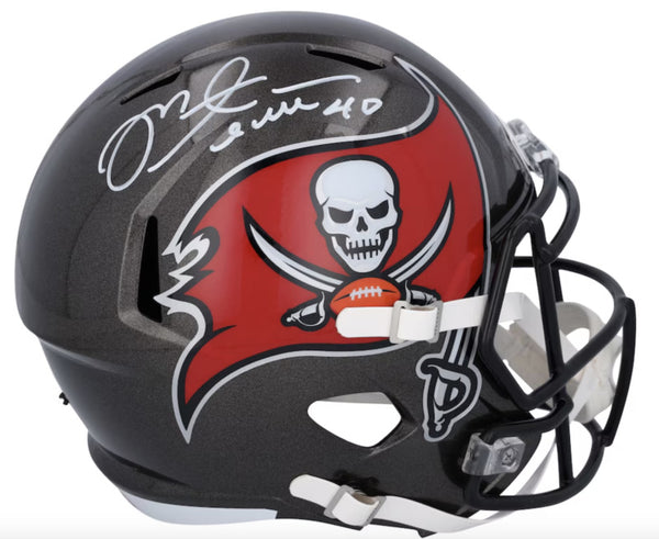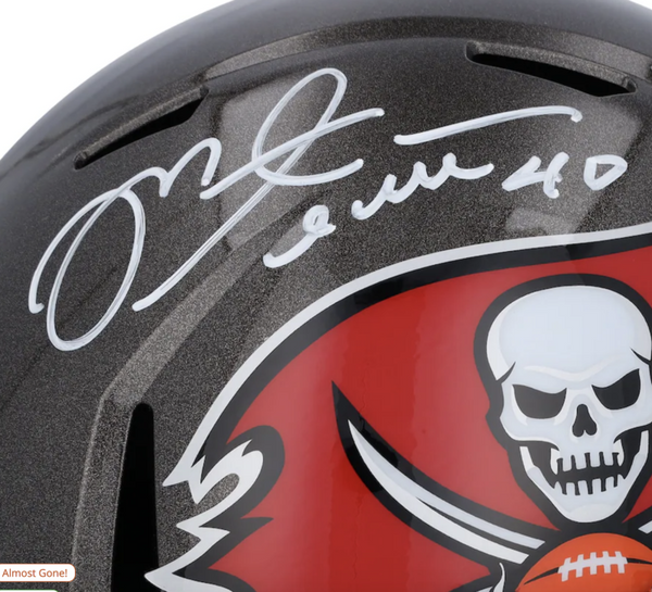 This full size speed replica helmet has been personally hand-signed by Mike Alstott. It is officially licensed by the National Football League and comes with an individually numbered, tamper-evident hologram from Fanatics Authentic. To ensure authenticity, the hologram can be reviewed online. This process helps to ensure that the product purchased is authentic and eliminates any possibility of duplication or fraud.