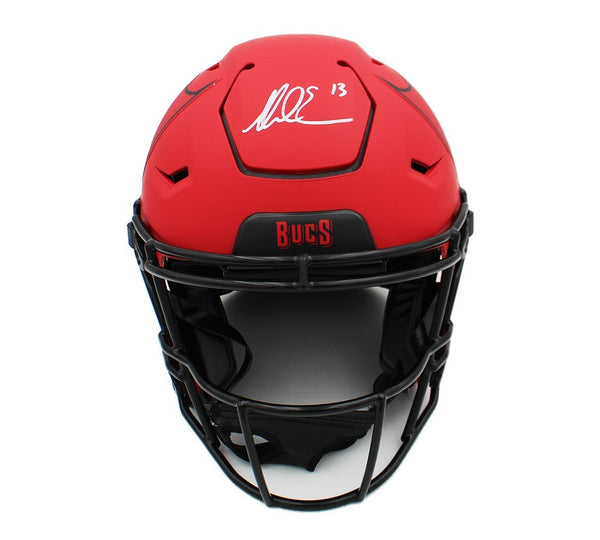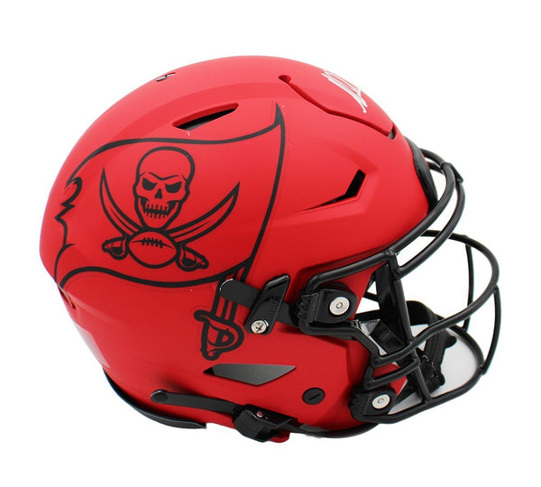 A Tampa Bay Buccaneers Speed Flex Authentic Rave NFL Helmet hand signed by Mike Evans. The item and signature are in excellent condition. Mike was the 7th overall pick in the 1st round of the 2014 NFL Draft. AUTHENTICATION: The item is accompanied by a Beckett Serial Numbered and Databased Hologram