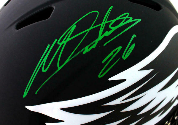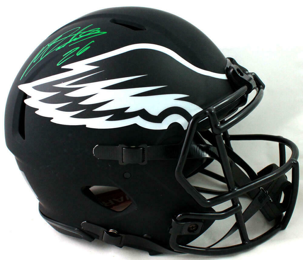 Miles Sanders Autographed Philadelphia Eagles F/S Eclipse Speed Authentic Helmet - JSA W Auth *Green This is a hand autographs of Miles Sanders of the Philadelphia Eagles on a Full Size Eclipse Speed Authentic Helmet. This item has a James Spence Witness Protection Authentication, which comes with a numbered sticker and a matching JSA Certificate of Authenticity. You can view this item on the SpenceLOA website. It was signed either at a public autograph appearance or a private signing. This is a stock photo of the item. Although you may not receive this exact item, the item you receive is virtually identical and brand new in great shape.