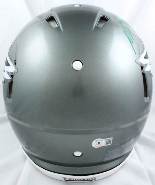 Miles Sanders Autographed Philadelphia Eagles F/S Flash Speed Authentic Helmet-Beckett W Hologram *Green This is a hand autograph of Miles Sanders of the Philadelphia Eagles on a Riddell Football Full Size Flash Speed Authentic Helmet. This item has a Beckett Witness Authentication, which comes with a Beckett numbered sticker hologram and a QR code for verification. You can view this item on the Beckett Authentication website, it shows when and where the item was signed. It was signed either at a public autograph appearance or a private signing. This is a stock photo of the item. Although you may not receive this exact item, the item you receive is virtually identical and brand new in great shape.