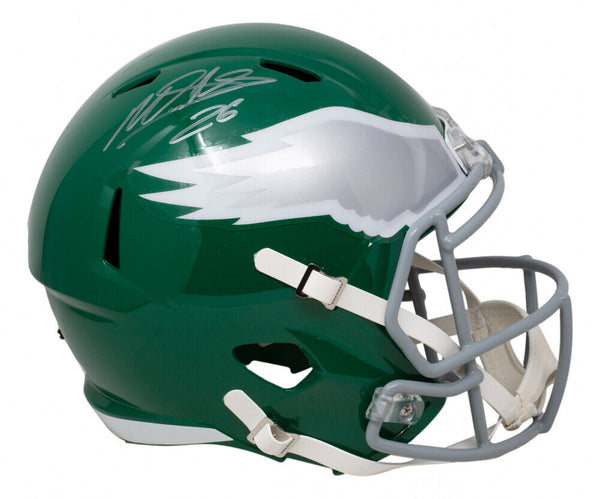 Riddell Philadelphia Eagles full-size Speed helmet. Hand-signed by Miles Sanders.The lot / autograph(s) includes an official James Spence Authentication (JSA) hologram and matching COA for authenticity purposes. The signing of this item was witnessed by JSA. Also includes a proof photo from the signing.Authentication: JSA COA