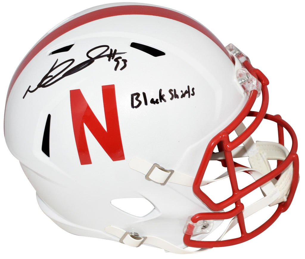 Ndamukong Suh, former All-American defensive tackle for the Cornhuskers, has hand signed this Nebraska Riddell Speed full-size replica helmet at a private signing. He included the inscription "Blackshirts" with his signature. This item is authenticated by Beckett Authentication Services and was signed in the presence of one of their representatives. Their tamper-evident hologram featuring a QR code and serial number is on the item. The authenticity can be verified online by entering the serial number or scanning the QR code.Item pictured may not be the exact item you will receive. It will be similar quality, and we guarantee your satisfaction.