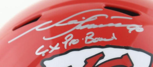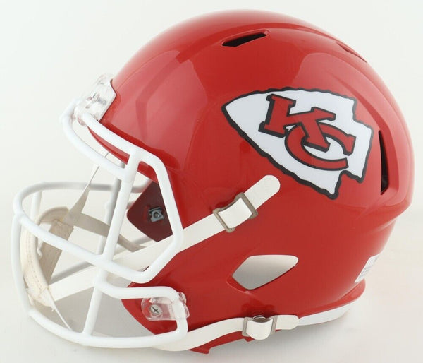 Riddell Kansas City Chiefs full size replica speed helmet. Hand-signed and inscribed by Neil Smith.The autograph(s) includes an official Schwartz Sports Hologram and matching COA for authenticity purposes.Authentication: Schwartz Sports COA
