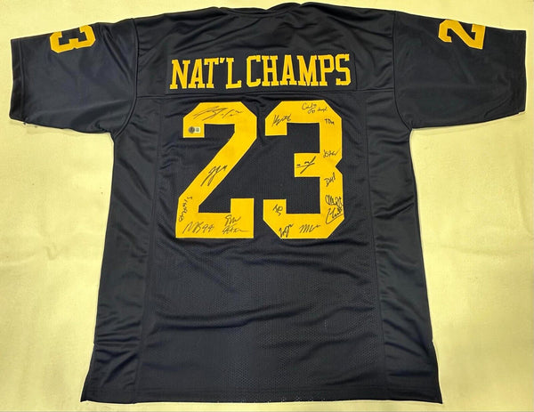 Custom On Field Style XL Jersey. Everything is stitched on. Signed by members of the 2023 Michigan Wolverines National Championship Team"23 CHAMPS" INSCRIPTIONNOTABLE SIGNATURES INCLUDE: JJ McCarthyBlake CorumMike SainristilColston LovelandWill JohnsonMason GrahamDerrick MooreSemaj MorganMakari PaigeMax BredesonMyles HintonKal-El MullingsTommy DomanKenneth GrantErnest HausmannQuentin JohnsonJosiah StewartBECKETT WITNESSED QR CODE HOLOGRAM COA