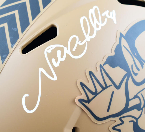 Nick Chubb Autographed Cleveland Browns F/S Salute to Service 2023 Speed Helmet-Beckett W Hologram *White This is a hand autograph of Nick Chubb of the Cleveland Browns on a Riddell Football Full Size Salute to Service 2023 Speed Replica Helmet. This item has a Beckett Witnessed Authentication, which comes with a Beckett numbered hologram and a QR code for verification. You can view this item on the Beckett Authentication website and it shows when and where the item was signed. It was signed either at a public autograph appearance or a private signing. This is a stock photo of the item. Although you may not receive this exact item, the item you receive is virtually identical and brand new in great shape.