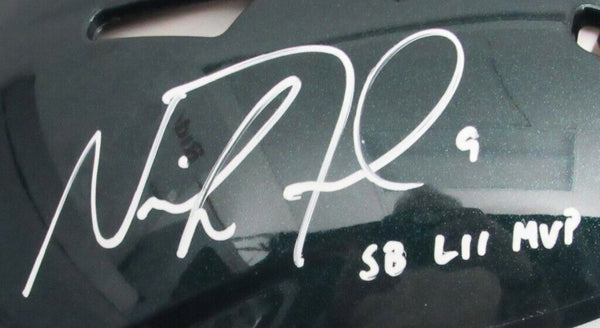 Nick Foles "SB LII MVP" & Doug Pederson "Philly Special" Dual-Signed/Inscribed Full Size Green Speed Authentic Football Helmet Philadelphia Eagles. This helmet is authenticated by PSA/DNA and Fanatics Authentic and includes their Tamper-proof Hologram Stickers and a PSA/DNA Certificate of Authentication.