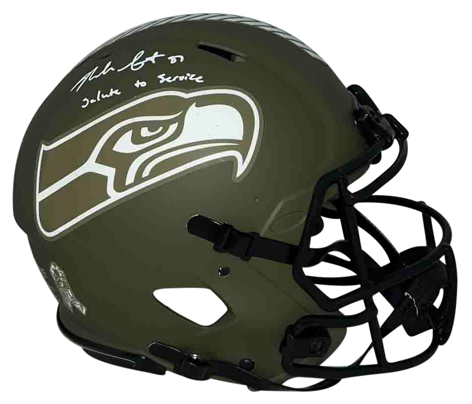 Noah Fant, star tight end for the Seattle Seahawks, has hand signed this Seahawks Riddell Speed Salute to Service full-size authentic helmet at a private signing. This helmet is fully padded inside like the ones worn on the field. This item is authenticated by Beckett Authentication Services and was signed in the presence of one of their representatives. Their tamper-evident hologram featuring a QR code and serial number is on the item. The authenticity can be verified online by entering the serial number or scanning the QR code.Item pictured may not be the exact item you will receive. It will be similar quality, and we guarantee your satisfaction.