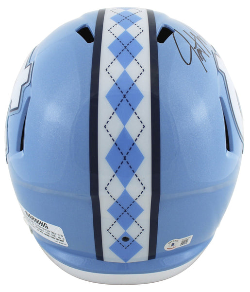 This Autographed Full Size Speed Rep Helmet has been Personally Signed by Javonte Williams of the North Carolina Tar Heels. This item is 100% Authentic to include a hologram by Beckett Authentication Services. This item may come with the new Beckett Authentication hologram that has a scannable QR code rather than the traditional COA. If you would like to have a COA, you are welcome to reach out to Beckett for a printed certification once you receive your item. This is a BAS Witnessed Protection Program item which means a Beckett Authentication Service representative was present when this item was being signed. We conducted an autograph signing with Javonte Williams where multiples of the same item were signed. While the photographs are representative of this item, the size, placement and strength of the signature may vary. Each item is hand signed, therefore, each autograph is unique. This item can be verified through BAS Witnessed.