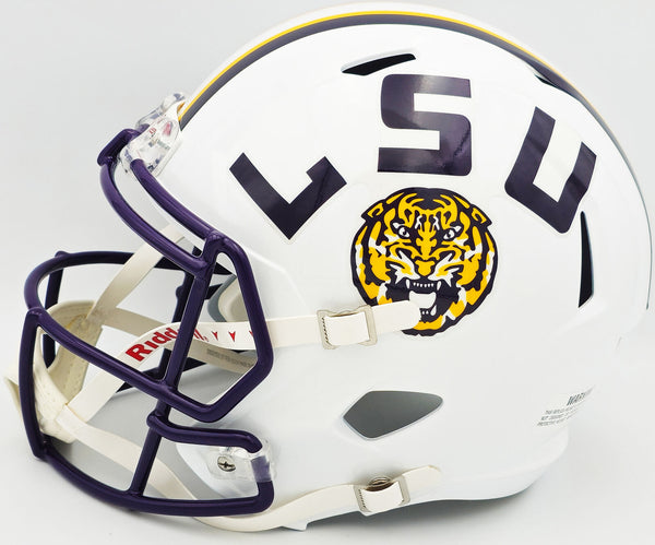 This is a LSU Tigers White Full Size Speed Replica Helmet that has been hand signed by Odell Beckham Jr. This item has been witnessed and certified authentic by Beckett Authentication (BAS) and comes with their tamper-proof witness hologram.
