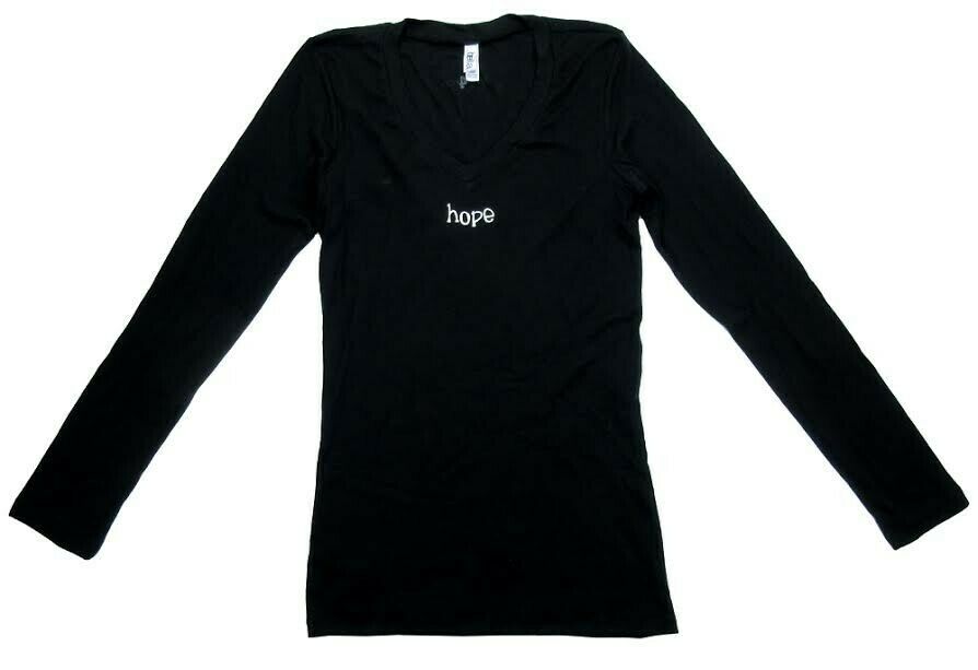 An Official Favre 4 Hope Black Ladies Long Sleeve Shirt with "Hope".