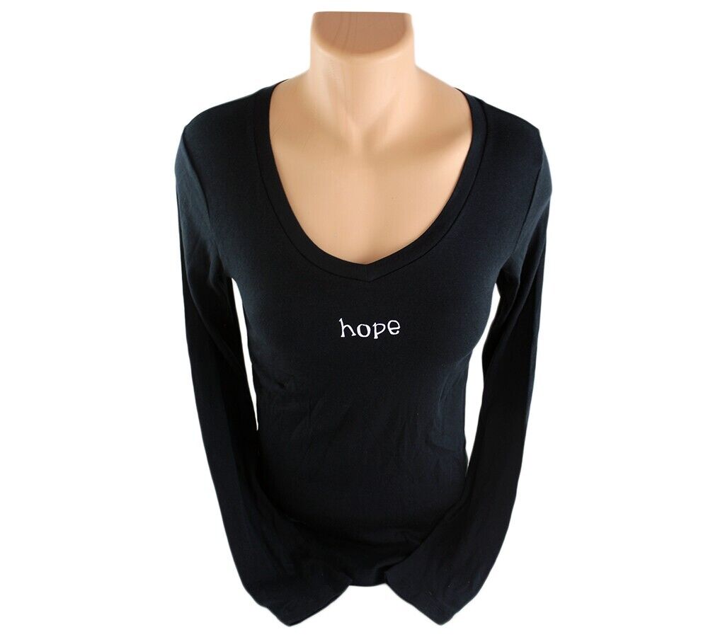 An Official Favre 4 Hope Black Ladies Long Sleeve Medium Shirt with "hope".