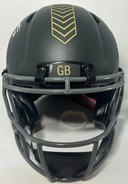 Riddell Full Size 2025 SALUTE TO SERVICE Authentic Speed Helmet hand signed by Green Bay Packers Super Bowl XLV Champ CLAY MATTHEWS. The signature is in White Paint Pen". This item was signed at a private signing and would make a great addition to any Packers collection! This item is guaranteed to be 100% authentic and will include a COA hologram from Beckett Authentication.