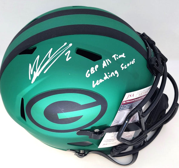 Riddell full size 2025 RAVE Replica Speed Helmet hand signed by Green Bay Packers Super Bowl XLV Champion MASON CROSBY. The signature is in White Paint Pen and includes the inscription "GBP All Time Leading Scorer". This item was signed at a private signing and would make a great addition to any Packers collection! This item is guaranteed to be 100% authentic and will include a COA from from JSA authentication.