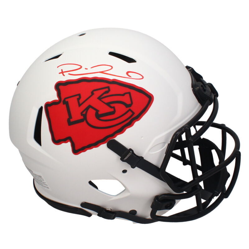 This Kansas City Chiefs Lunar Eclipse authentic helmet has been personally hand-signed by Patrick Mahomes. It is officially licensed by the National Football League and comes with an individually numbered, tamper-evident hologram from Beckett Authentic. To ensure authenticity, the hologram can be reviewed online. This process helps to ensure that the product purchased is authentic and eliminates any possibility of duplication or fraud.