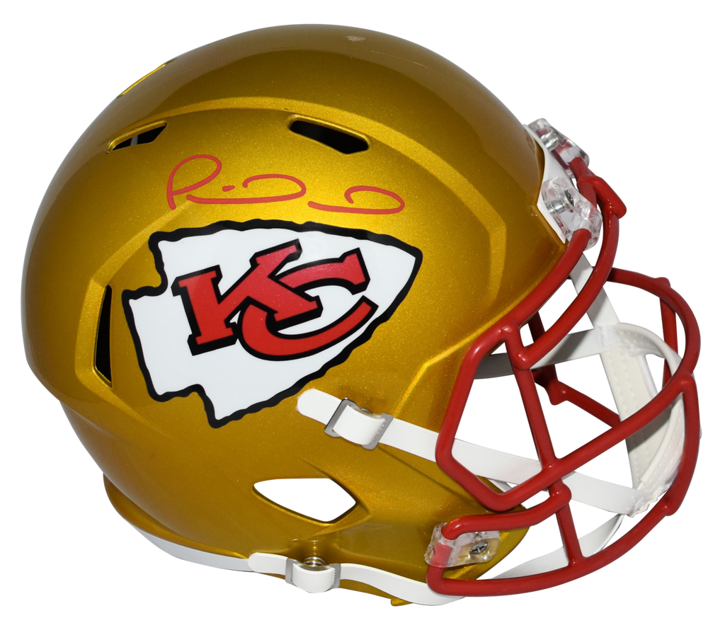 Patrick Mahomes, star quarterback for the Kansas City Chiefs, has hand signed this Chiefs Riddell Speed Flash full-size replica helmet at a private signing. This item is authenticated by Beckett Authentication Services and was signed in the presence of one of their representatives. Their tamper-evident hologram featuring a QR code and serial number is on the item. The authenticity can be verified online by entering the serial number or scanning the QR code.Item pictured may not be the exact item you will receive. It will be similar quality, and we guarantee your satisfaction.