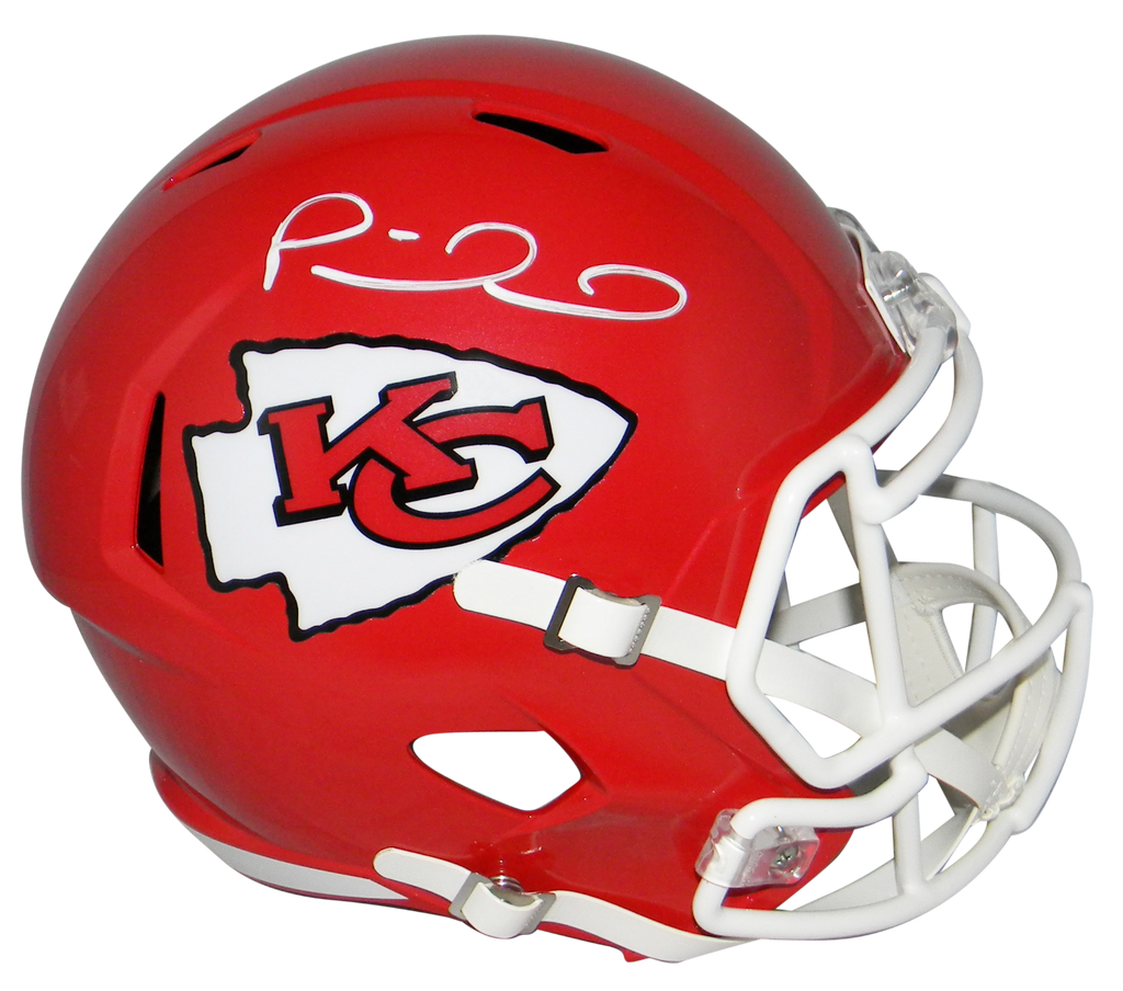 Patrick Mahomes, star quarterback for the Kansas City Chiefs, has hand signed this Chiefs Riddell Speed full-size replica helmet at a private signing. This item is authenticated by Beckett Authentication Services and was signed in the presence of one of their representatives. Their tamper-evident hologram featuring a QR code and serial number is on the item. The authenticity can be verified online by entering the serial number or scanning the QR code.Item pictured may not be the exact item you will receive. It will be similar quality, and we guarantee your satisfaction.