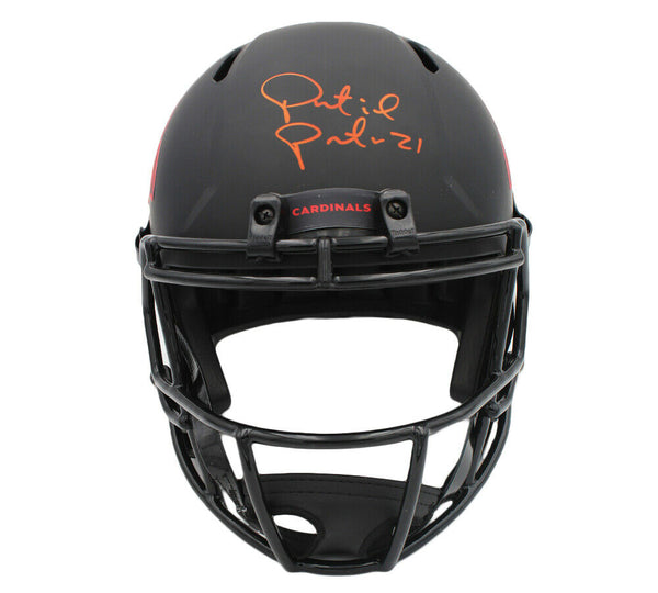 An Arizona Cardinals Speed Replica Eclipse NFL Helmet hand signed by Patrick Peterson. The item and signature are in excellent condition. Patrick is a football cornerback. He was picked 1st round with 5th overall pick in the 2011 Draft by Arizona Cardinals. He played college football at LSU. He is an 8x Pro Bowler, and 3x First-team All-Pro. AUTHENTICATION: The item is accompanied by a Certificate of Authenticity - Serial Numbered and Databased Hologram - Picture of Patrick from the Signing -