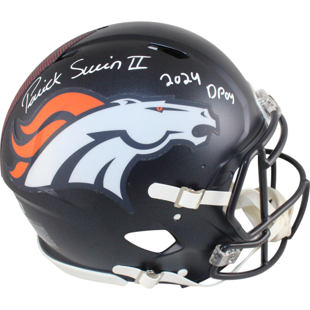 The number in the listing title is just an inventory sku for our records and is not the authentication number. The item pictured is a stock photo unless otherwise noted. This is a Denver Broncos Full Size Authentic Speed Helmet that was personally autographed by Patrick Surtain includes "2024 DPOY" inscription. Includes a certificate of authenticity from Beckett Authentication Services (BAS) and Denver Autographs.FREE SHIPPING within the USA on orders over $10!
