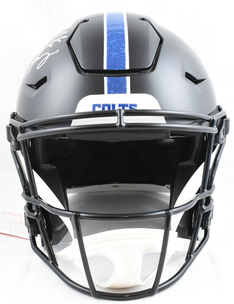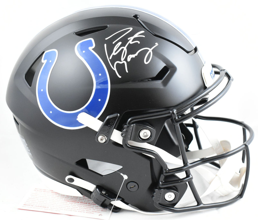 This is a Peyton Manning of the Indianapolis Colts Autographed Riddell football full size Alternate 2023 Speed Flex Authentic helmet. This item has a Fanatics Authentication, which comes with a numbered sticker hologram and a QR code for verification. You can view this item on the Fanatics Authentication website and it shows when and where the item was signed. It was signed either at a public autograph appearance or a private signing. This is a stock photo of the item. Although you may not receive this exact item, the item you receive is virtually identical, brand new, and in great shape. *Autograph location may vary* This is a Peyton Manning of the Indianapolis Colts Autographed Riddell football full size Alternate 2023 Speed Flex Authentic helmet. This item has a Fanatics Authentication, which comes with a numbered sticker hologram and a QR code for verification. You can view this item on the Fanatics Authentication website and it shows when and where the item was signed. It was signed either at a public autograph appearance or a private signing. This is a stock photo of the item. Although you may not receive this exact item, the item you receive is virtually identical, brand new, and in great shape. *Autograph location may vary*
