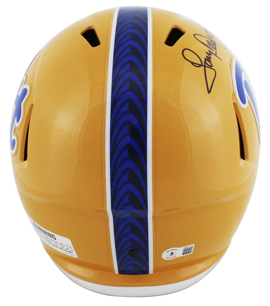 This Autographed Yellow Riddell Full Size Speed Rep Helmet W/ Uv Mirrored Back Acrylic Display Case with the inscription of "76 Heisman" has been Personally Signed by Tony Dorsett of the Pittsburgh Panthers. This item is 100% Authentic to include a hologram by Beckett Authentication Services. This item will come with an affixed Beckett Authentication Services (BAS) authentication sticker, which includes a scannable QR code to verify authenticity. Please note that Beckett no longer provides serial-numbered COA cards, and the attached BAS sticker will serve as the complete authentication for this item. This is a BAS Witnessed Protection Program item which means a Beckett Authentication Service representative was present when this item was being signed. We conducted an autograph signing with Tony Dorsett where multiples of the same item were signed. While the photographs are representative of this item, the size, placement and strength of the signature may vary. Each item is hand signed, therefore, each autograph is unique. This item can be verified through BAS Witnessed.