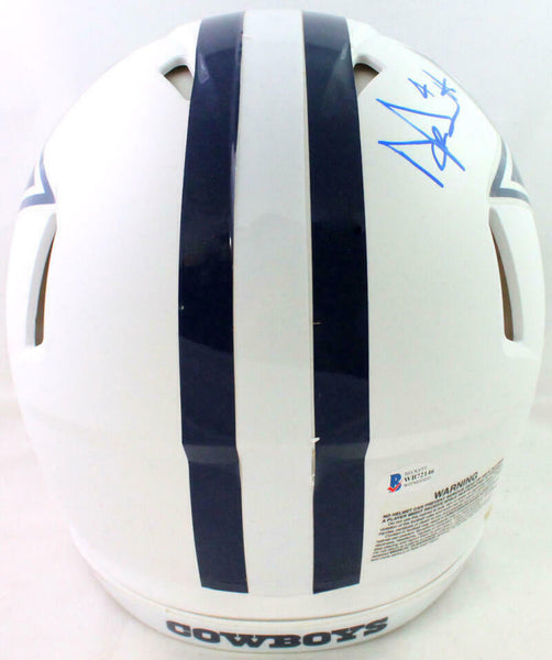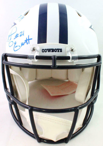 Prescott/Cooper/Elliott Autographed Cowboys F/S Flat White Speed Authentic Helmet- Beckett W *Blue This is a Dak Prescott, Zeke Elliott, and Amari Cooper of the Dallas Cowboys hand autographed Riddell Football Full Size Flat White Speed Authentic Helmet. This item has a Beckett Witnessed Authentication, which comes with a numbered and a matching Beckett Certificate of Authenticity. You can view this item on the Beckett Authentication website and it shows when and where the item was signed. It was signed either at a public autograph appearance or a private signing. This is a stock photo of the item. Although you may not receive this exact item, the item you receive is virtually identical, brand new, and in great shape.