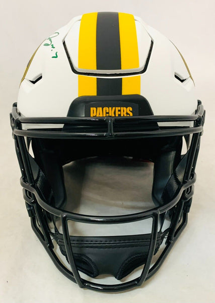 QUAY WALKER AUTOGRAPHED GREEN BAY PACKERS FULL SIZE LUNAR ECLIPSE SPEEDFLEX HELMET WITH BECKETT WITNESSED COATHIS MEANS THE MINI HELMET WAS SIGNED WITH A BECKETT REPRESENTATIVE PRESENT SO YOU CAN BE 100% CERTAIN ITS THE REAL THING.