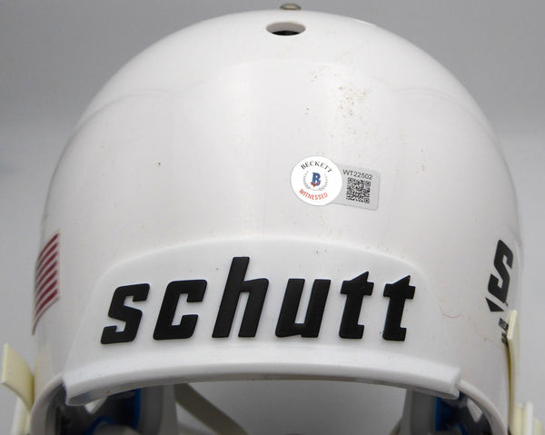 This is a White Full Size Replica Helmet that has been hand signed by Quinn Ewers. This item has been certified authentic by Beckett Authentication (BAS) and comes with their tamper-proof QR Code sticker that can be verified on the Beckett-authentication.com.