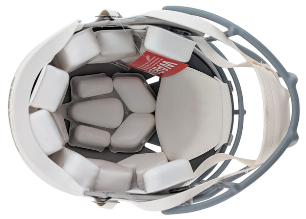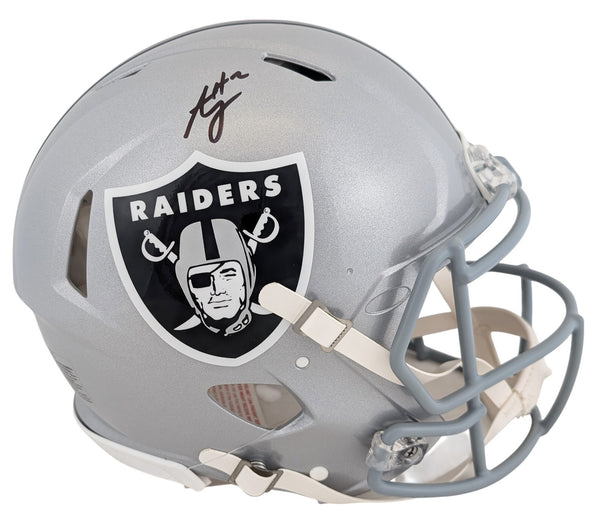 This Autographed Authentic Full Size Speed Proline Helmet has been Personally Signed by Ashton Jeanty of the Las Vegas Raiders. This item is 100% Authentic to include a hologram by Beckett Authentication Services. This item will come with an affixed Beckett Authentication Services (BAS) authentication sticker, which includes a scannable QR code to verify authenticity. Please note that Beckett no longer provides serial-numbered COA cards, and the attached BAS sticker will serve as the complete authentication for this item. This is a BAS Witnessed Protection Program item which means a Beckett Authentication Service representative was present when this item was being signed. We conducted an autograph signing with Ashton Jeanty where multiples of the same item were signed. While the photographs are representative of this item, the size, placement and strength of the signature may vary. Each item is hand signed, therefore, each autograph is unique. This item can be verified through BAS Witnessed.