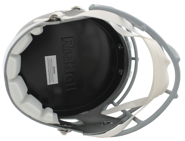 This Autographed Alternate Flash Riddell Full Size Speed Rep Helmet has been Personally Signed by Davante Adams of the Las Vegas Raiders. This item is 100% Authentic to include a hologram by Beckett Authentication Services. This item may come with the new Beckett Authentication hologram that has a scannable QR code rather than the traditional COA. If you would like to have a COA, you are welcome to reach out to Beckett for a printed certification once you receive your item. This is a BAS Witnessed Protection Program item which means a Beckett Authentication Service representative was present when this item was being signed. We conducted an autograph signing with Davante Adams where multiples of the same item were signed. While the photographs are representative of this item, the size, placement and strength of the signature may vary. Each item is hand signed, therefore, each autograph is unique. This item can be verified through BAS Witnessed.