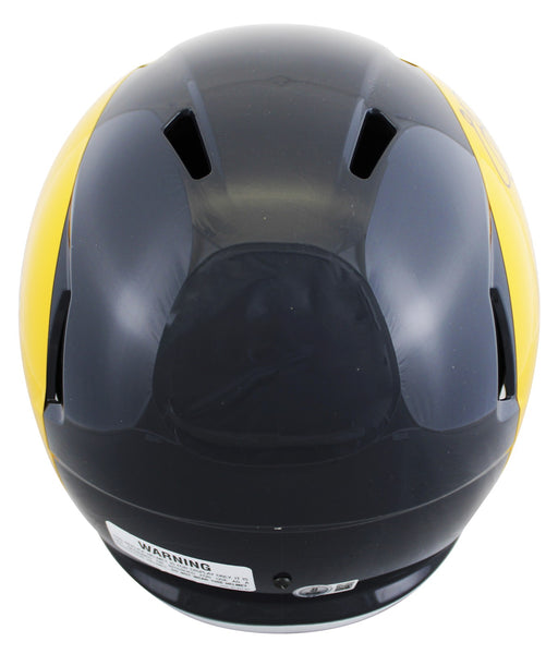 This Autographed 1981-99 Throwback Full Size Speed Rep Helmet W/ Uv Mirrored Back Acrylic Display Case with the inscription of "HOF 99" has been Personally Signed by Eric Dickerson of the Los Angeles Rams. This item is 100% Authentic to include a hologram by Beckett Authentication Services. This item will come with an affixed Beckett Authentication Services (BAS) authentication sticker, which includes a scannable QR code to verify authenticity. Please note that Beckett no longer provides serial-numbered COA cards, and the attached BAS sticker will serve as the complete authentication for this item. This is a BAS Witnessed Protection Program item which means a Beckett Authentication Service representative was present when this item was being signed. We conducted an autograph signing with Eric Dickerson where multiples of the same item were signed. While the photographs are representative of this item, the size, placement and strength of the signature may vary. Each item is hand signed, therefore, each autograph is unique. This item can be verified through BAS Witnessed.