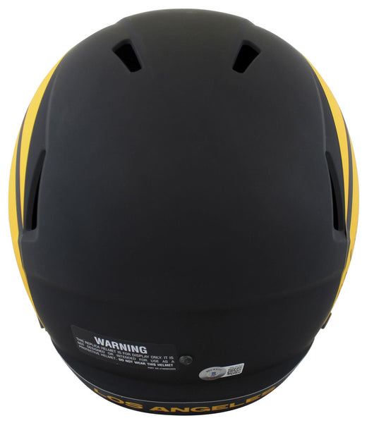 This Autographed Alternate Eclipse Riddell Full Size Speed Rep Helmet has been Personally Signed by Kurt Warner & Marshall Faulk of the St. Louis Rams. This item is 100% Authentic to include a Certificate of Authenticity (COA) / hologram by Beckett Authentication Services. This is a BAS Witnessed Protection Program item which means a Beckett Authentication Service representative was present when this item was being signed. We conducted an autograph signing with Kurt Warner & Marshall Faulk where multiples of the same item were signed. While the photographs are representative of this item, the size, placement and strength of the signature may vary. Each item is hand signed, therefore, each autograph is unique. This item can be verified through BAS Witnessed.
