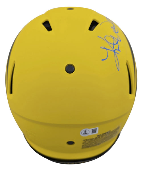 This Autographed Alternate Rave Riddell Authentic Full Size Speed Proline Helmet with the inscription of "HOF 20XI (Faulk), HOF 17 (Warner)" has been Personally Signed by Marshall Faulk & Kurt Warner of the Los Angeles Rams. This item is 100% Authentic to include a hologram by Beckett Authentication Services. This item will come with an affixed Beckett Authentication Services (BAS) authentication sticker, which includes a scannable QR code to verify authenticity. Please note that Beckett no longer provides serial-numbered COA cards, and the attached BAS sticker will serve as the complete authentication for this item. This is a BAS Witnessed Protection Program item which means a Beckett Authentication Service representative was present when this item was being signed. We conducted an autograph signing with Marshall Faulk & Kurt Warner where multiples of the same item were signed. While the photographs are representative of this item, the size, placement and strength of the signature may vary. Each item is hand signed, therefore, each autograph is unique. This item can be verified through BAS Witnessed.