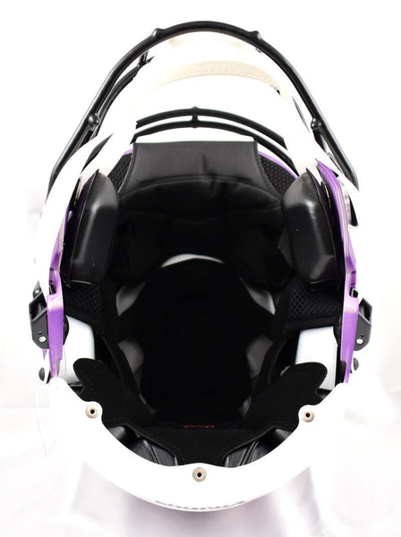 Randy Moss Autographed Minnesota Vikings F/S Speed Flex - Beckett W Hologram *Silver This is a hand autograph of Randy Moss of the Minnesota Vikings on a Riddell Football Full Size Speed Flex Authentic Helmet. This item has a Beckett Witnessed Authentication, which comes with a numbered sticker hologram and a QR code for verification. You can view this item on the Beckett Authentication website and it shows when and where the item was signed. It was signed either at a public autograph appearance or a private signing. This is a stock photo of the item. Although you may not receive this exact item, the item you receive is virtually identical and brand new in great shape.