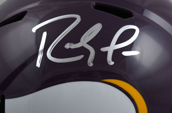 This is a Randy Moss of the Minnesota Vikings Autographed Riddell football full size 61-79 Speed Replica helmet. This item has a Beckett Witnessed Authentication, which comes with a numbered hologram and a QR code for verification. You can view this item on the Beckett Authentication website and it shows when and where the item was signed. It was signed either at a public autograph appearance or a private signing. This is a stock photo of the item. Although you may not receive this exact item, the item you receive is virtually identical, brand new, and in great shape. *Autograph location may vary* This is a Randy Moss of the Minnesota Vikings Autographed Riddell football full size 61-79 Speed Replica helmet. This item has a Beckett Witnessed Authentication, which comes with a numbered hologram and a QR code for verification. You can view this item on the Beckett Authentication website and it shows when and where the item was signed. It was signed either at a public autograph appearance or a private signing. This is a stock photo of the item. Although you may not receive this exact item, the item you receive is virtually identical, brand new, and in great shape. *Autograph location may vary*