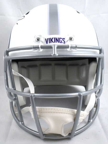 This is a Randy Moss of the Minnesota Vikings Autographed Riddell football full size Alternate 2024 Speed Replica helmet. This item has a Beckett Witnessed Authentication, which comes with a numbered hologram and a QR code for verification. You can view this item on the Beckett Authentication website and it shows when and where the item was signed. It was signed either at a public autograph appearance or a private signing. This is a stock photo of the item. Although you may not receive this exact item, the item you receive is virtually identical, brand new, and in great shape. *Autograph location may vary* This is a Randy Moss of the Minnesota Vikings Autographed Riddell football full size Alternate 2024 Speed Replica helmet. This item has a Beckett Witnessed Authentication, which comes with a numbered hologram and a QR code for verification. You can view this item on the Beckett Authentication website and it shows when and where the item was signed. It was signed either at a public autograph appearance or a private signing. This is a stock photo of the item. Although you may not receive this exact item, the item you receive is virtually identical, brand new, and in great shape. *Autograph location may vary*
