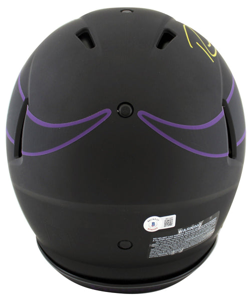 This Autographed Alternate Eclipse Riddell Authentic Full Size Speed Proline Helmet has been Personally Signed by Randy Moss & Justin Jefferson of the Minnesota Vikings. This item is 100% Authentic to include a hologram by Beckett Authentication Services. This item will come with an affixed Beckett Authentication Services (BAS) authentication sticker, which includes a scannable QR code to verify authenticity. Please note that Beckett no longer provides serial-numbered COA cards, and the attached BAS sticker will serve as the complete authentication for this item. This is a BAS Witnessed Protection Program item which means a Beckett Authentication Service representative was present when this item was being signed. We conducted an autograph signing with Randy Moss & Justin Jefferson where multiples of the same item were signed. While the photographs are representative of this item, the size, placement and strength of the signature may vary. Each item is hand signed, therefore, each autograph is unique. This item can be verified through BAS Witnessed.