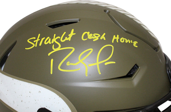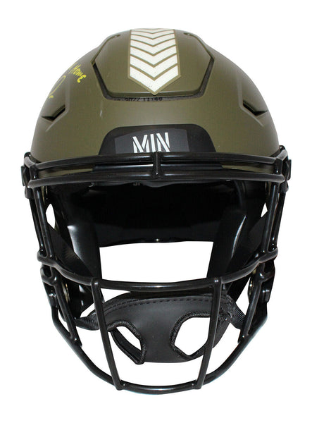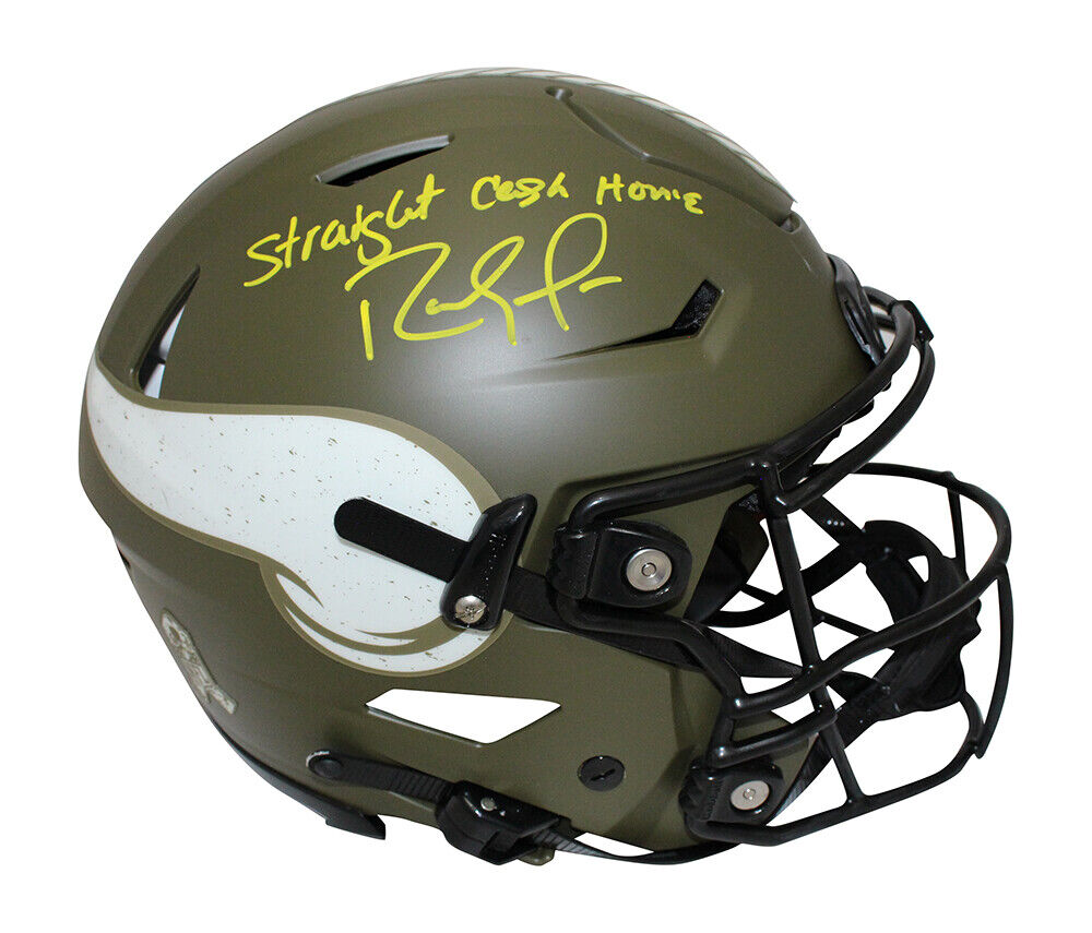 Randy Moss Signed Minnesota Vikings SpeedFlex Salute insc Helmet BAS 40225 The number in the listing title is just an inventory sku for our records and is not the authentication number. The item pictured is a stock photo unless otherwise noted. This is a Minnesota VIkings full size speedflex salute authentic helmet that was personally autographed by Randy Moss with "Straight Cash Homie" inscription. Includes a certificate of authenticity from Beckett Authentication Services (BAS) and Denver Autographs.