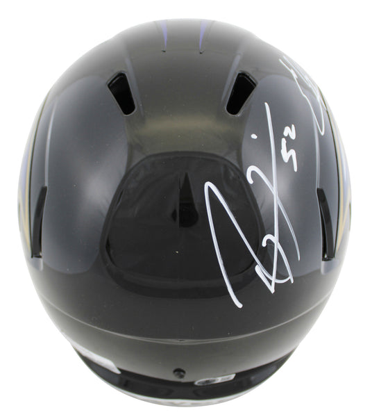 This Autographed Full Size Speed Rep Helmet has been Personally Signed by Ray Lewis & Ed Reed of the Baltimore Ravens. This item is 100% Authentic to include a hologram by Beckett Authentication Services. This item will come with the new Beckett Authentication hologram that has a scannable QR code rather than the traditional COA. If you would like to have a COA, you are welcome to reach out to Beckett for a printed certification once you receive your item. This is a BAS Witnessed Protection Program item which means a Beckett Authentication Service representative was present when this item was being signed. We conducted an autograph signing with Ray Lewis & Ed Reed where multiples of the same item were signed. While the photographs are representative of this item, the size, placement and strength of the signature may vary. Each item is hand signed, therefore, each autograph is unique. This item can be verified through BAS Witnessed.