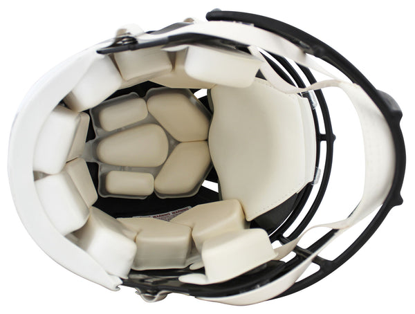 This Autographed Authentic Full Size Speed Proline Helmet with the inscription of "SB XLVII MVP (Flacco) & SB XXXV MVP (Lewis)" has been Personally Signed by Ray Lewis & Joe Flacco of the Baltimore Ravens. This item is 100% Authentic to include a hologram by Beckett Authentication Services. This item will come with an affixed Beckett Authentication Services (BAS) authentication sticker, which includes a scannable QR code to verify authenticity. Please note that Beckett no longer provides serial-numbered COA cards, and the attached BAS sticker will serve as the complete authentication for this item. This is a BAS Witnessed Protection Program item which means a Beckett Authentication Service representative was present when this item was being signed. We conducted an autograph signing with Ray Lewis & Joe Flacco where multiples of the same item were signed. While the photographs are representative of this item, the size, placement and strength of the signature may vary. Each item is hand signed, therefore, each autograph is unique. This item can be verified through BAS Witnessed.