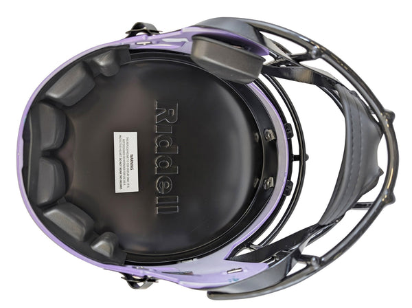 This Autographed Alternate Rave Riddell Full Size Speed Rep Helmet W/ Uv Mirrored Back Acrylic Display Case has been Personally Signed by Zay Flowers of the Baltimore Ravens. This item is 100% Authentic to include a hologram by Beckett Authentication Services. This item will come with an affixed Beckett Authentication Services (BAS) authentication sticker, which includes a scannable QR code to verify authenticity. Please note that Beckett no longer provides serial-numbered COA cards, and the attached BAS sticker will serve as the complete authentication for this item. This is a BAS Witnessed Protection Program item which means a Beckett Authentication Service representative was present when this item was being signed. We conducted an autograph signing with Zay Flowers where multiples of the same item were signed. While the photographs are representative of this item, the size, placement and strength of the signature may vary. Each item is hand signed, therefore, each autograph is unique. This item can be verified through BAS Witnessed.