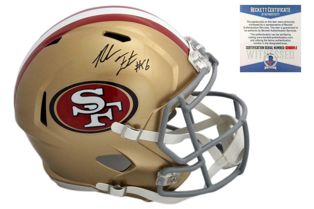 This signed item is brand new in box. This item will make a great gift or a great addition to any collection at an AFFORDABLE PRICE! ATHLETE: Reuben Foster ITEM: San Francisco 49ers Full Size Speed Replica Helmet AUTHENTICATION: This item comes with a Beckett "Witnessed" Certificate of Authenticity and serial #'ed hologram affixed to the item. To ensure authenticity, the hologram can be reviewed online. This process helps to ensure that the product purchased is authentic and eliminates any possibility of duplication or fraud. This item was signed in the presence of a Beckett representative.